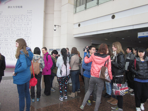 2013年3月20日(星期三)上午,外语学院德语所1102班接待了来自德国的短期交流团,并与德国同学就中德文化差异进行的交流。交流团的成员来自德国克雷尔菲尔德(Krefeld)包括Fabritianum在内的八所文理高中,其均为汉语学习者,正受到杭州学军中学的邀请在华进行交流。
