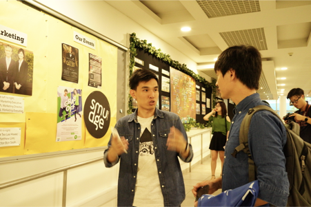 第一站,交流团来到了新加坡管理大学(以下简称新大)。这所亚洲顶级的财经类院校,拥有无校门校墙的设计和商业中心的优势地理位置,让新大融于市井服务于民,也提供新大学子更多接触社会的机会。在地下,一条精彩纷呈的通道串起新大主要的5栋专业学院楼。曲折的步道中张贴了制作精美的活动回顾照片和各色各样的社团海报,还开设了舒适的学习区域、专业的电子产品维修点等功能区。在新大研究生同学的带领下,交流团边行边问,初步了解新大的特色社团文化和学生组织架构。