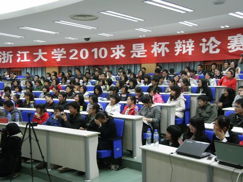 附浙江大学“求是杯”辩论赛简介:“求是杯”面向浙江大学全体学生,目的在于激发更多同学积极参与辩论,在思维与口才的激情碰撞中共寻真理,提高同学们的语言表达能力和逻辑思辨能力,并将“求是”精神深入每位同学的心中。 2010年“求是杯”辩论赛将进行五轮淘汰赛,赛时将从四月份延续到五月底。历年的“求是杯”为全校的辩论爱好者提供了一个展示自己的舞台,为学生搭建了相互沟通的桥梁,引发同学对社会时事的关注,引导同学从多元化的视角探讨社会热点,从而提高学生综合素质。