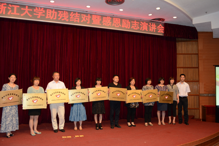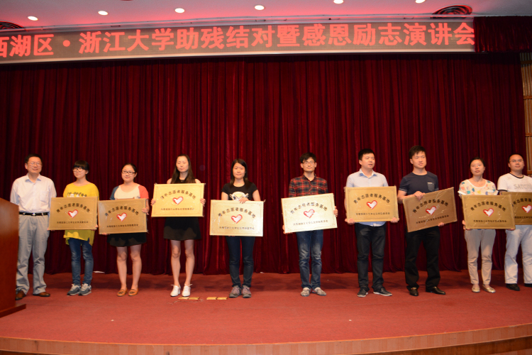 2014年5月25日下午,恰逢“全国助残日”到来之际,我校各院系与西湖区街镇及工疗站结对授牌仪式,在浙江省图书馆二楼报告厅举行。西湖区政府、残联、团委及浙江大学团委和各结对院系相关师生代表参加仪式。