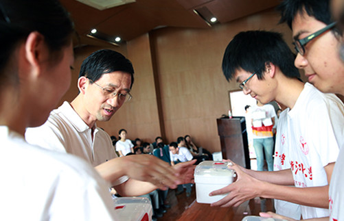 师生集体默哀过后,严建华语重心长地强调了保证社会实践安全的重要性。为了强调实践过程中的安全,严建华代表学校专门向校级重点立项团队代表赠送药箱,再三叮咛同学们保护自身安全。
