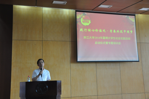 6月13日下午,浙江大学2014年暑期大学生社会实践活动启动仪式暨专题培训会在紫金港校区召开。校党委副书记严建华出席会议并讲话。院系负责人、参与今年社会实践的师生代表参加活动。