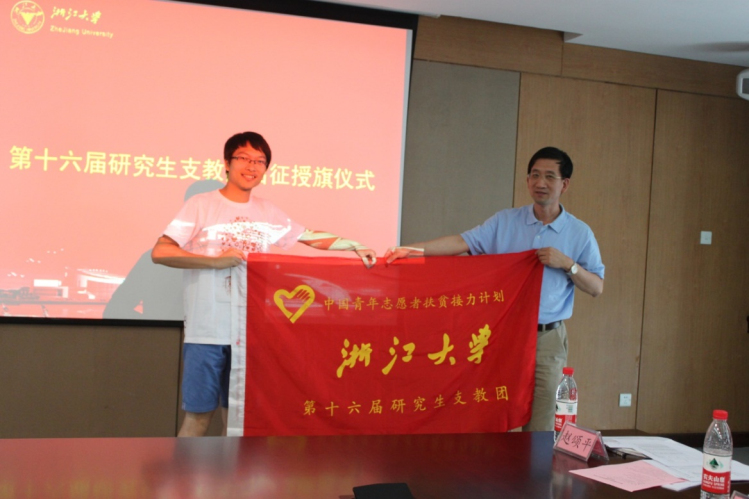 座谈会上,严建华书记为我校第十六届研究生支教团授旗,并在听取支教团工作汇报后作了激情洋溢的讲话。他赞扬了支教团成员的志愿服务成效,指出浙大学子在历年来的志愿服务中充分发挥志愿者的桥梁、宣传和引导作用,通过创新教育手段、搭建捐资平台、提升师资水平、支持基础建设等活动,努力促进支教地的教育发展和社会发展。他希望第十六届支教团成员们能承前启后,在更广阔的平台上践行社会主义核心价值观,主动承担社会责任,以实际行动促进支教地的发展与进步。“青年时代,选择奉献也就选择了高尚,希望同学们不仅读好有字之书,更要读好无字之书,以更加主动的姿态接受基层的历练。”