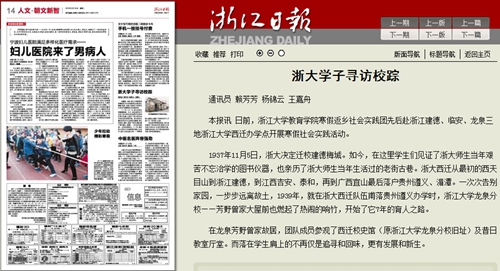 浙江日报讯 日前,浙江大学教育学院寒假返乡社会实践团先后赴浙江建德、临安、龙泉三地浙江大学西迁办学点开展寒假社会实践活动。