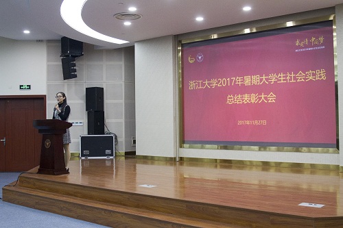 11月27日,浙江大学2017年暑期大学生社会实践总结表彰大会在蒙明伟楼225举行,各院系师生代表近500人参加了活动。校党委副书记郑强教授出席会议并讲话。今年暑期,全校共有500余支实践团队,7000余名学生围绕“求是情·中国梦”主题,奔赴全国各地开展形式多样、内容丰富的实践活动,产生了丰厚的实践成果,取得了良好的社会反响。