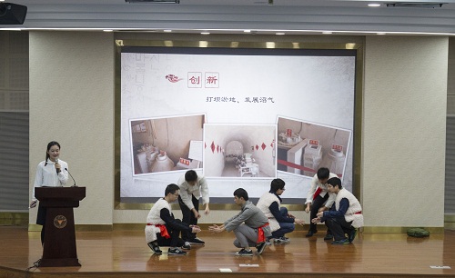 三支社会实践优秀团队现场展示了暑期社会实践成果。信电学院赴陕西西安“走进青年习近平”暑期社会实践团以现场表演的形式生动展现了习近平总书记当年下乡的事迹和他们的社会实践活动;农学院赴五省十一市暑期社会实践团以座谈会的形式分享了他们运用农业知识促进西部农村经济发展的经验;国际联合学院(海宁国际校区)赴贵州湄潭“讲好中国故事”暑期社会实践团联合国际留学生,向大家展示了他们更具国际化的社会实践活动。三支团队展现形式迥异但都内容丰富,引起台下观众一阵阵掌声。