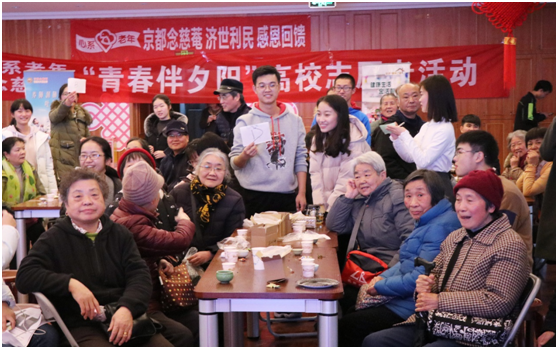 青春伴夕阳活动由中国婚姻家庭研究会、中国老龄事业发展基金会、中国老年人体育协会以及心系系列活动项目办公室联合主办,京都念慈菴总厂有限公司协办,浙江大学团委青年志愿者指导中心承办,旨在通过促进青年大学生和周边老年群体的创新互动,带动更多的社会群体参与到孝心工程“青春伴夕阳”志愿者活动中来,以实际行动传播“新24孝”倡议的教育内涵,让大学生群体在实践中感悟孝心、践行孝德。为高校搭建大学生孝老助老实践平台、孝文化传播公益平台及青老沟通交流平台。同时,通过活动的开展,推动大学生走上敬老、助老的公益之路,传承中华民族的传统美德,促进家庭和睦与社会和谐。
