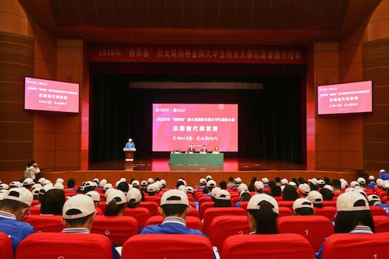 10月20日上午,2018年“创青春”浙大双创杯全国大学生创业大赛动员大会暨通用培训在浙江大学紫金港剧场召开。现场2153名志愿者参与培训。