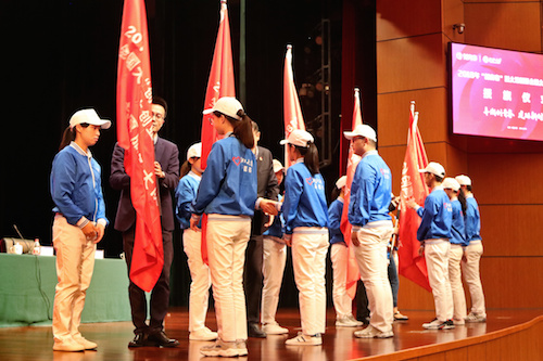 大会还对各志愿服务大队的志愿者代表进行了授旗仪式。