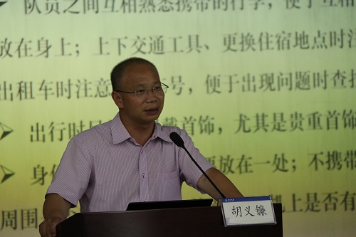 为保障2019年各立项团队能顺利完成实践,安全保卫处的胡义镰老师进行社会实践安全保障培训,从国家安全意识、警惕诈骗、预防人身伤害、住宿和实践现场安全四个方面讲述了如何在社会实践之中切实地保障安全,并给团队们提出了“四定位”、“四做到”的要求。