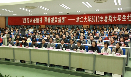 11月22日晚,浙江大学2010年暑期大学生社会实践总结表彰大会在紫金港蒙民伟楼隆重举行。校党委副书记郑强,副教务长严建华,副秘书长、党委办公室、校长办公室主任叶民等出席表彰大会。