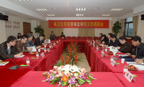 随后,调研组一行在6号楼19楼会议室听取了浙一医院青年文明号创建工作汇报。调研座谈会由顾国煜副院长主持。厉有名副书记代表医院致欢迎辞。他首先对团省委和省卫生厅领导的到来表示热烈的欢迎,并对各级领导长期以来对浙一医院青年文明号工作的大力支持和关心帮助表示衷心感谢。厉书记指出:青年已经成为医院发展的中坚力量,“青年强则浙一强”。医院高度重视通过青年文明号载体发挥青年在医院医疗服务、人才培养等各项事业中的中坚作用,涌现了一批后备学科带头人、业务骨干和中层管理干部。经过多年努力,目前浙一医院已经拥有1家国家级青年文明号和5家省级青年文明号,形成了规模效应,为今后浙一医院青年文明号工作的发展奠定了良好基础。紧接着,肾脏病中心和门诊西药房两家青年文明号代表全院青年文明号做了特色工作汇报。
