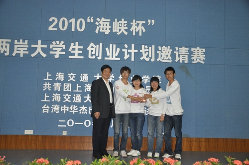 10月16日下午,由共青团上海交通大学委员会、上海交通大学创业学院、上海交通大学港澳台办公室、台湾中华杰出青年交流促进会共同主办的2010“海峡杯”两岸大学生创业计划邀请赛在上海交通大学落下帷幕。来自台湾大学、台湾交通大学、台湾清华大学、台湾中央大学、台湾建国科技大学、台湾东吴大学,台湾政治大学的7支团队,以及清华大学、北京大学、上海交通大学、南京大学、复旦大学和我校的创业团队共百余名学子参加本次盛会。我校紫竹创业团队获得第三名,与上海交通大学IN客创业团队、台湾Clickpick创业团队共列前三甲,并荣获最佳人气奖。