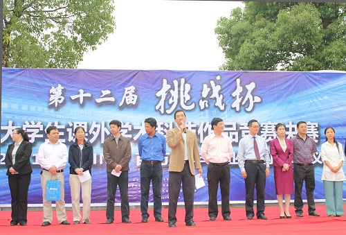 2011年5月22日上午,浙江大学第十二届“挑战杯”大学生课外学术科技作品竞赛决赛暨2011年“MM”百万青年创业计划启动仪式在紫金港校区文化广场隆重举行,浙江大学副教务长严建华、党委研工部部长吕淼华、纪律委员会办公室副主任叶晓萍、党委学工部办公室主任王建军、校团委书记刘艳辉等出席了本次活动。公共管理学院党委副书记包松、控制科学与工程学系副系主任张光新、生命科学学院副院长杨卫军、生命科学学院党委副书记汤海旸、药学院副院长杨波、药学院常务副院长兼医学部副主任陈忠等相关专家出席并担任了竞赛的评委。