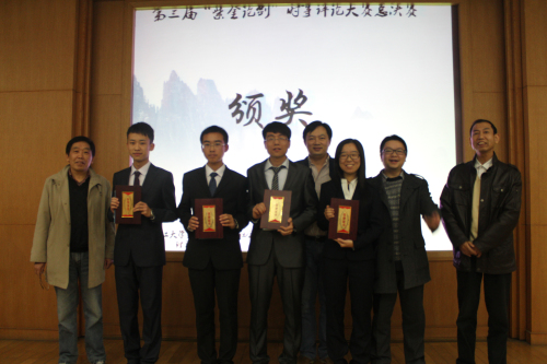 “李克强经济学”、“美国医疗改革”、“中国东海防空识别区”……一些列热点时事政治话题,你都能在“紫金论剑”赛场上选手们口若悬河的演讲中听到。12月3日晚,由浙江大学学生中国特色社会主义理论体系研究会主办的第三届“紫金论剑”时事评论大赛总决赛在紫金港校区国会中心138举行。经过初赛、复赛的层层选拔,共有八位选手脱颖而出,进入总决赛。