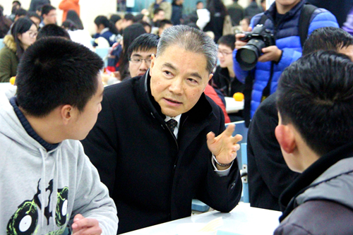 12月31日晚,浙江大学各大食堂排起了长龙,同学们手中握着本届学生节特制的粮票,等待享用学校提供的免费“欢乐迎新餐”。浙江大学党委书记金德水,校长林建华,党委常务副书记邹晓东,常务副校长吴朝晖、宋永华,党委副书记任少波、周谷平、严建华,副校长张土乔、罗卫东、罗建宏、张宏建等校领导分赴各校区食堂,与同学们共进晚餐,迎接新年的到来。校领导还亲切询问同学们对于此次学生节的体会以及食物是否可口。