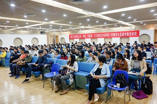 2016年10月15日下午,浙江大学党校玉泉、西溪、华家池、之江校区2016年第二期学生发展对象培训班在邵逸夫科学馆举行。培训内容包括4次主题报告和一次影视课程,使200多名学生发展对象在党风党纪、党章党史、社会主义核心价值观和理想信等方面进行了深入的学习和思考。