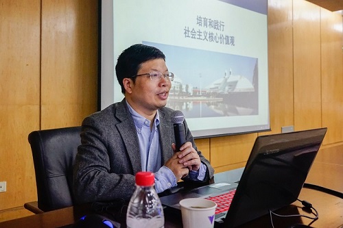 10月16日上午,浙江大学党委宣传部部长应飚老师作了题为《培育和践行社会主义核心价值观》的主题报告。应飚老师首先强调了思想和文化的力量:在当今世界,争夺“软权力”成为综合国力竞争焦点,而社会主义核心价值观是文化软实力的关键,其内容具体包含12个词。另外,立足于习总书记近年的重要讲话等具体例子,应老师帮助学员进一步了解社会主义核心价值观内涵与重要意义。
