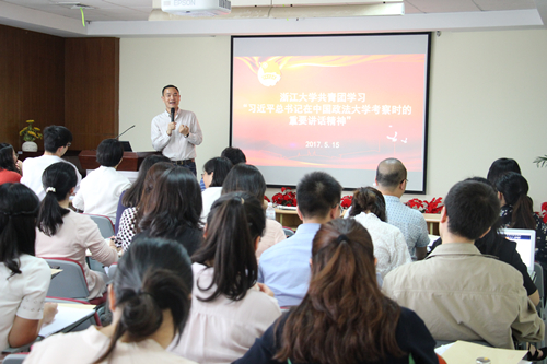 5月15日下午,浙江大学共青团在紫金港校区小剧场B座201会议室举行“习近平总书记在中国政法大学考察时的重要讲话精神”学习会。全校各院系团委书记及校团委专兼挂团干部六十余人参与会议。