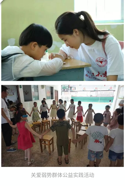 求是学子们还奔赴“一带一路”沿线地区广泛开展关心农村留守儿童、关怀城市民工子女、关爱社会残障人士等关爱弱势群体公益实践活动;结合当地特色和实际开展文化遗产保护、旅游资源开发、环境污染治理等主题鲜明的公益实践活动等。在社会实践活动中,广大浙大学子主动接触社会、了解国情、坚定理想、磨练意志,将个人的社会实践与国家的发展战略相结合,将激昂的青春梦融入伟大的中国梦。