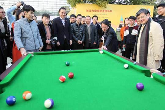 如果想体验京剧脸谱绘制、机械臂射击等社团特色活动,写新年心愿灯笼,观看茶艺、弓社、魔术魔方表演,在社团体验日都能得到满足。本届社团体验日以“ZJUtopia——致新时代美好的社团生活”为主题,共23家参与文化广场的现场展示,分为风之谷、未来城、龙门阁、童话镇四个体验区块,展现出一片“社团文化百家争鸣”的热烈气氛。校长吴朝晖、校党委副书记郑强也来到现场,体验并体验了吉他社、子鼠诗社、古琴研究会、机器人协会、台球协会等社团的活动。
