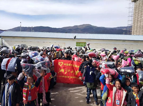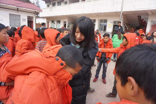 (支教团成员在三岔河乡中心校进行爱心捐助活动)