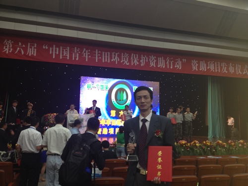 “中国青年丰田环境保护资助行动”(“中国青年丰田环保奖”)是共青团中央、全国青联、丰田公司共同组织实施的大型环保公益活动,至今已成功举办六届。“中国青年丰田环境保护资助行动”以“同一个地球 同一份责任”为主题,主要面向18至45周岁的中国公民和以该年龄段为主体的青年团队,旨在引导我国广大青年积极参与 “两型社会”的构建及生态文明的建设,通过奖励资助广大青年在环保领域的积极创意,向在环保领域作出突出贡献的青年和青年团队提供赴国外学习交流机会、项目资助等方式,提升整个社会青年群体对环境保护和可持续发展的认知程度、责任意识与行动能力。本届评选活动于4月启动,经各地推荐和自荐、初评、网络投票、专家评审,全国最终共有7名先进个人和8个先进团队均在各自的环保领域持之以恒的做出了扎实的成绩和突出的贡献而获此殊荣。