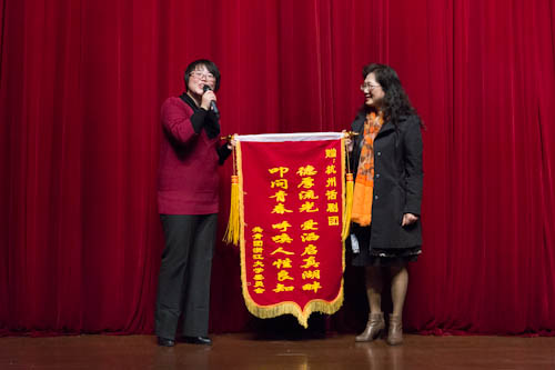 校团委书记刘艳辉老师首先致辞。她介绍了第一届求是青年风尚节的活动背景、活动内容以及开展情况。希望各承办院级团委精心组织,确保活动质量,充分调动同学们的积极性,发挥同学们的创造力,进一步扩大活动覆盖面和受益面;希望广大同学积极参与风尚节各项活动,从中领悟求是精髓,践行求是风尚,展现当代求是学子的青春活力。随后,她还代表学校团委向杭州话剧团赠送了锦旗。
