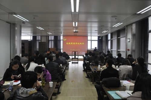 11月22日上午,校团委在紫金港校区图书馆国立浙江大学厅召开院级团委书记例会,专题学习十八大精神。校团委刘艳辉书记对十八大精神做了传达和解读。我校四十余个院级团组织负责人和校团委全体人员参加了会议。