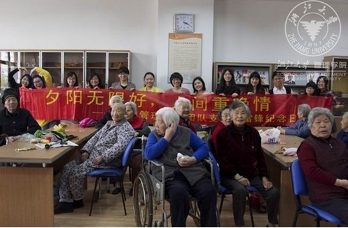 3月8日下午,管理学院旅游管理系1001班的同学们,顶着烈日骄阳,来到位于拱墅区的杭州市社会福利中心,为那里的老人们带来了一场“夕阳无限好,人间重晚晴”的文艺节目演出。