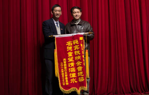 严建华在致辞中对历年来学生科技文化节取得的成就表示充分肯定,对本届文化节的举办表示衷心祝贺。他指出,举办学生科技文化节不但有利于进一步提升青年学生的科技创新素质和道德文化素养,而且有利于推动建设和谐、健康、积极向上的良好校园文化氛围。同时,他也代表学校对浙江交响乐团的到来表示诚挚感谢,并向浙江交响乐团赠送了锦旗。