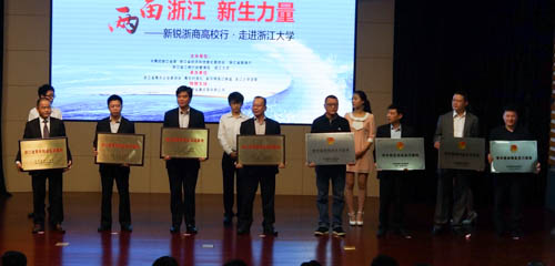 活动中还举行了浙江青年创业实训基地、省级青年就业创业见习基地授牌仪式,大学生创业导师聘书颁发仪式。随后,蒙努集团董事长邹格兵和康奈集团副总裁郑莱莉代表新锐浙商发言,浙江大学管理学院07级本科生李熙昂代表创业大学生发言。邹格兵结合创业经历阐述了品牌战略的重要性,并分享了建设国际知名家居文化企业的“中国梦”;郑莱莉结合自己学习制鞋工艺、改革企业管理模式的切身体会,勉励青年朋友继承浙商坚韧不拔的宝贵精神品质;李熙昂回顾了创业计划竞赛对其开展创业实践的帮助,分享了多年创业实践的心得体会。