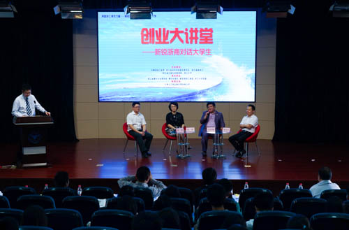活动另一个重要环节是“创业大讲堂”——新锐浙商对话大学生。四位新锐浙商向现场同学分享了自己的创业经历和创业感悟。吉奥集团有限公司董事长缪雪中结合在吉利公司十五年的奋斗历程和创建吉奥集团的曲折经历,总结了创业成功的秘诀即勤奋、执着和善于把握时机;浙江家业控股集团董事长沈坚强回顾了公司从生产皮革的小作坊到如今多元化大企业走过的历程,强调了魄力、毅力和洞察力在企业初创和经营过程中的重要性;莱茵达置业股份有限公司总裁陶椿作为一名职业经理人,告诫同学们在职业生涯中务必坚守商道,做到诚信、阳光、正直;浙江万安科技股份有限公司总经理陈锋则强调了科技型企业开展校企合作的重要意义,鼓励广大同学走“实业救国”之路,积极而大胆地投身创业实践。在场同学对创新创业充满热情,积极向企业家们提问,企业家们也以睿智的思想、坦诚的态度、生动的语言得到在场师生的一致赞许。