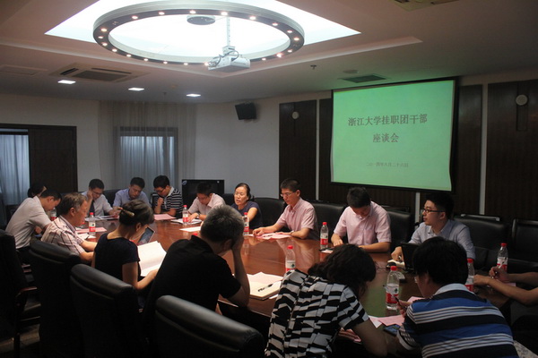 8月26日下午,浙江大学挂职团干部座谈会在紫金港校区举行。在座谈会上,三位刚刚结束挂职工作的团干部吴维东、孙毅、陈大进详细汇报了自己在挂职期间的工作收获和思考体会。三位挂职团干部都做到了迅速融入地方,全心投入工作,并取得了较为突出的工作成绩,受到了挂职单位的肯定与好评。在做好挂职岗位本职工作的同时,他们还努力开拓和深化学校与挂职单位相关合作项目,为我校学生开辟更多的成长锻炼平台。三位挂职干部一致表示,一年的挂职锻炼工作,带给了自己全新的工作视野和工作思路,锻炼很大,收获很多,这段履历将会使自己终生难忘、终生受益。