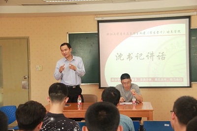 在老师寄语环节中,沈黎勇老师首先对在场通过层层选拔进入青马学院的36名八期马儿表达了祝贺之情,同时也对马儿们提出了殷切的期望和更高的要求。他表示,每位同学加入青马都要清楚一点,加入青马学院不应该是为了在简历上镀金,而应该是在自己的人生中镀金。青马学院培养的是又红又专的学生骨干,红在理想信念,专在公共服务能力。最后沈黎勇老师祝福每一位八期马儿经过青马一年培养期的工作学习,都能够成为理论素养高、实践能力强的学生骨干。