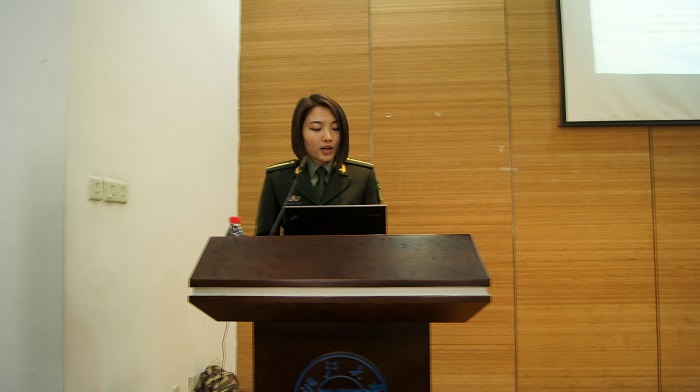 刘丽雅同学从两个方面来展开她的报告。作为浙江大学优秀国防生典型、南京军区国防生招生形象大使,她在第一部分向大家介绍了浙江大学国防生,从吃苦耐劳的训练篇、踏实刻苦的学习篇、全面发展的文体篇三个角度来讲述浙江大学对国防生的精心培养,正是从这样的环境中汲取营养,她才逐渐成长成熟。第二部分,向大家分享了她七年追梦、五次冲锋、两度从军的动人故事。受到军人家庭环境的熏陶,她从小就立志要做一名军人,尽管由于汶川地震等一系列原因一度使她与梦想失之交臂,但她从未停止过追求梦想的脚步,本科期间参军入伍,退役之后用三年时间修完了四年的课程,以专业第一名的成绩保研浙大,来到浙大之后积极争取加入浙大国防生大家庭,终圆梦浙大。不懈努力,积极进取,相继获得了第四届浙江省“十佳大学生”、浙江大学“优秀共产党员”、“优秀研究生干部”、“优秀团干部”;南京军区“国防生暑期基地化集训先进个人”、南京军区“井冈山革命传统教育实践活动优秀学员”等荣誉称号。最后,刘丽雅同学以“不忘初心,方得始终”来总结了自己的过往,激励大家勇追梦想,不畏前行!