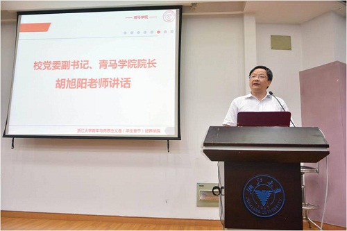 9月29日晚,浙江大学青年马克思主义者(学生骨干)培养学院第八期学员结业暨第九期学员开班仪式在紫金港校区国际会议中心223顺利举行。两期青马学员共聚一堂,共同见证第八期青马学员顺利结业,第九期学员光荣加入,总结优秀成果,展望美好未来。校党委副书记、青马学院院长胡旭阳,公共管理学院教授、青马学院导师余潇枫,党委组织部副部长王志强,党委宣传部副部长李金林,党委学工部副部长李文腾,党委研工部副部长陈凯旋,校团委书记沈黎勇、副书记卢飞霞出席了仪式。