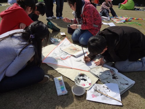 活动分为风筝设计和自由放飞两个环节。风筝设计环节中,各参赛队伍席地而坐,或粗粗勾勒,或精描细绘,或夸张,或秀雅,队员们用颜料、画笔亲手在风筝上描绘他们心中的浙大。每一幅娟丽秀美的画面,都承载着求是学子对母校的深深眷恋与真心祈愿。