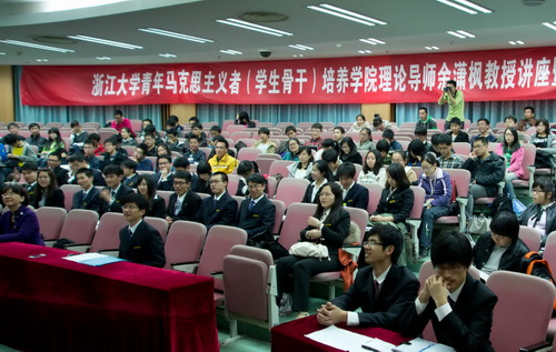 浙江大学青年马克思主义者(学生骨干)培养学院成立于2008年,旨在培养一批政治坚定、德才兼备、素质全面、模范表率、堪当重任的青年马克思主义者,迄今已培养四期逾120名优秀学生骨干。理论导师是青马学院重要的资源,理论讲座也是青马学员培养过程中的重要一环,对青马学员理论素养的提升和全面成长成才意义重大。此次余潇枫教授《风险社会与安全治理》讲座暨青马五期招生宣讲会也是青马学院五期学员招生活动中的重头戏,为广大同学了解青马学院搭建了平台。