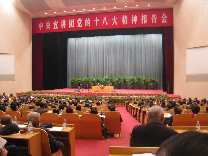 12月2日下午,中央宣讲团十八大精神报告会在浙江省人民大会堂举行,中央宣讲团成员、商务部部长陈德铭作宣讲报告,在杭相关部门领导同志,老同志代表,部队官兵代表,机关干部代表和高校师生代表参加了会议。我校青年马克思主义者(学生骨干)培养学院全体同学在校党委宣传部沈文华部长、章旻老师和班主任高翔老师的带领下,全程认真听取了报告。