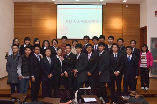 紧接着青马五期同学与大家一同分享了走访六位代表后的心得感悟。走访中十八大党代表、杭州市西湖区人民法院立案庭副庭长陈辽敏女士,浙江省第十一届人民代表大会常务委员会委员、浙大法学院教授朱新力老师,杭州市第十二届人大代表、西湖博物馆副馆长杨鸣女士,杭州市第十二届人代表、桐庐县分水高级中学校长吴建飞老师,西湖区十三届、十四届人大代表、计算机学院副院长陈越老师,西湖区三墩镇人大代表冉茂忠主任分别就提升法律意识、实践人大责任、保障老人生活、建设基层教育、交通食品安全以及服务基层群众等多个方面提出了自己的建议和想法。青马同学结合自身理解,对党代表、人大代表提出的各种现实问题结合实例进行深入分析,与在座同学进行了广泛交流,加深了同学们对于我国人大制度以及政治体制的了解和认识。