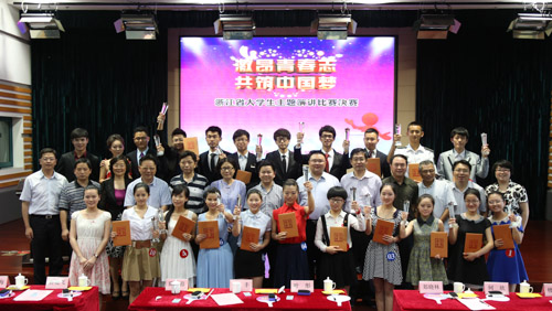 为引导广大青年大学生深入领会习近平总书记对“中国梦”的深刻阐释,激励青年大学生争做精神富有的浙江青少年,6月7日下午,由中共浙江省委宣传部、浙江省文明办、共青团浙江省委、浙江省教育厅、浙江省学生联合会共同主办,共青团浙江大学委员会承办的“激昂青春志 共筑中国梦”浙江省大学生主题演讲比赛在浙江大学紫金港校区临水报告厅隆重举行。团省委副书记朱斌、浙江大学党委副书记任少波等领导和嘉宾出席
