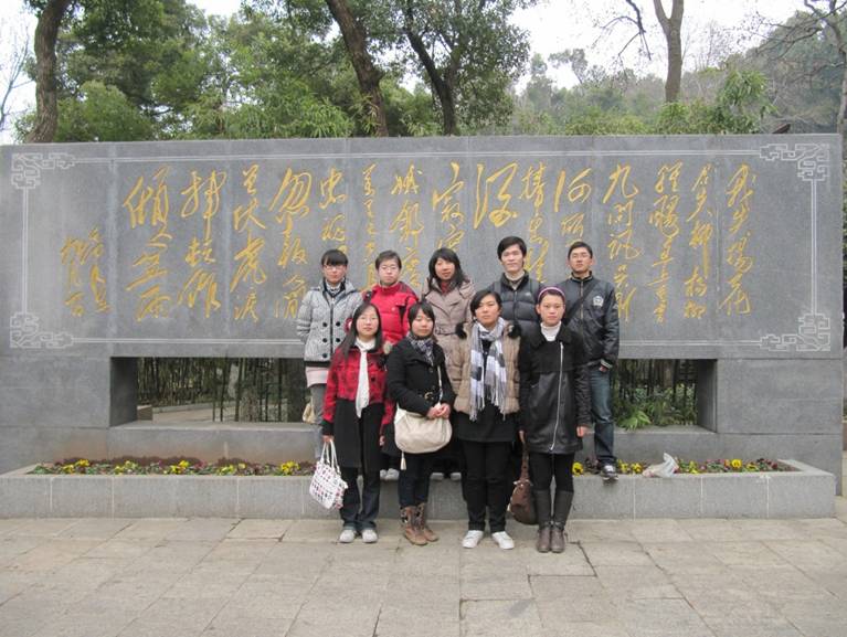 图注:参加调研的同学在毛主席诗词刻碑前合影