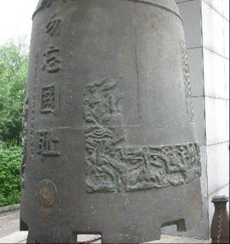 在“残历碑”的前面有一座警世钟,悬挂在三角形的支架上。那刻在斑驳的钟身上的,是中华民族的血泪之史——“勿忘国耻”。其一,勿忘国耻当思国运。其二,勿忘国耻当思发展。其三,勿忘国耻当思忧患。