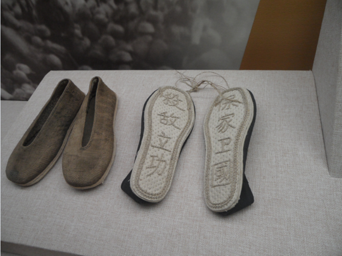 图注:八路军战士脚着的草鞋、布鞋(尹少彤摄)