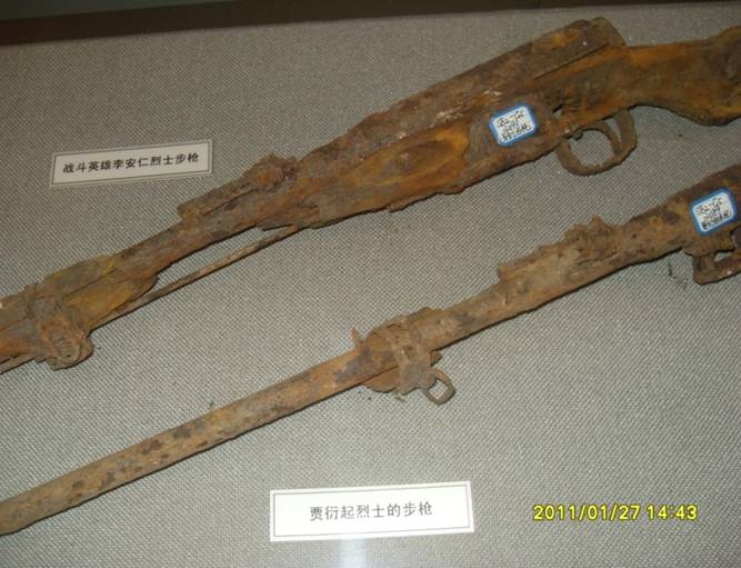 图注:战斗英雄李安仁和贾衍起烈士生前的步枪