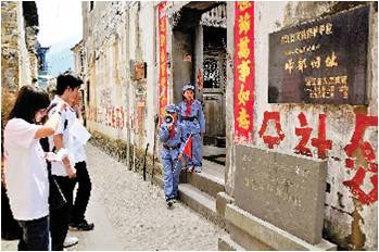 “小红军”开始讲解了。原来,1935 年7 月,红军挺进师进驻王村口,成立王村口苏维埃政府后,于7 月29 日,就在这个“天后宫”,举行了庄严的“八一”示威誓师大会。