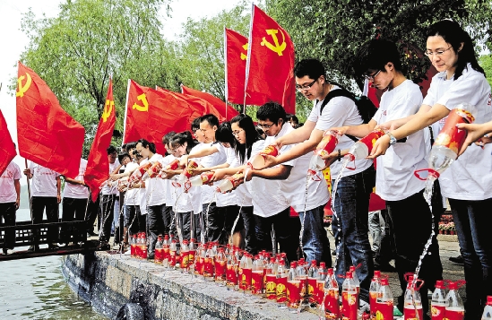 ,饮水思源红色寻访活动走进党的诞生地嘉兴南湖,采自全省各地的