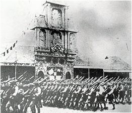 1949年10月1日,首都北京30万军民在天安门广场集会,隆重举行开国大典,新中国成立。中国人民从此站起来了!