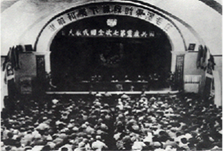 1945年4月23日至6月11日,中国共产党第七次全国代表大会在延安隆重召开。七大制定了党在新形势下的路线,并确立了毛泽东思想在全党的指导地位。七大通过的党章明确规定:毛泽东思想,就是马克思列宁主义的理论与中国革命的实践之统一的思想,就是中国的马克思主义。这是党总结中国近代特别是建党以来经验作出的一项极为重要的决策。
